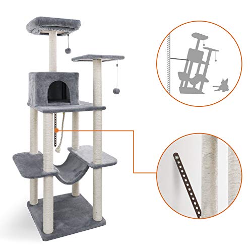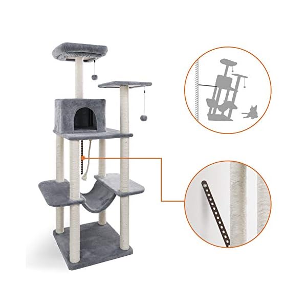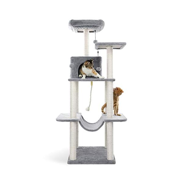 Eono by Amazon Katzenbaum mit Sisal Katzenkratzbaum Katzenturm Hängematte Höhle Kratzbäume Kletterbaum Katzenmöbel Katzenspielzeug Grau