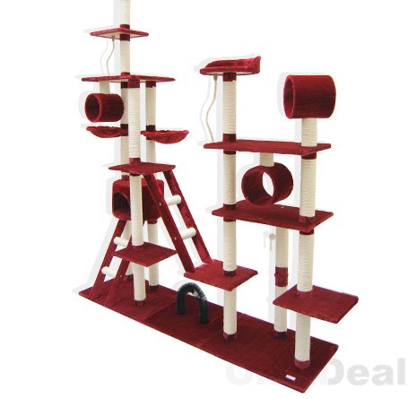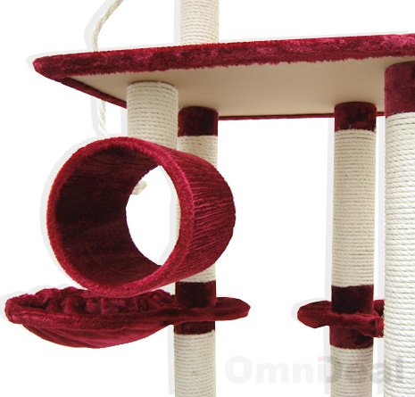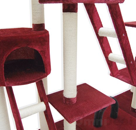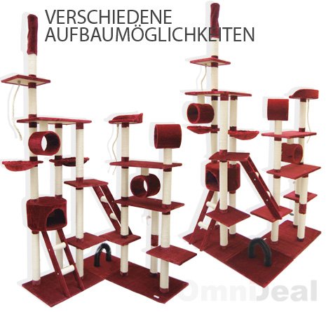 Die Stämme sind mit strapazierfähigem, hochwertigem Natursisal umgewickelt – ideal zum Krallen schärfen Viele Extras: Schlafplatz, Speilseil, Spielzeugmaus, Katzenleiter, Durchschlupf und ein Kuschelkratzbogen.
