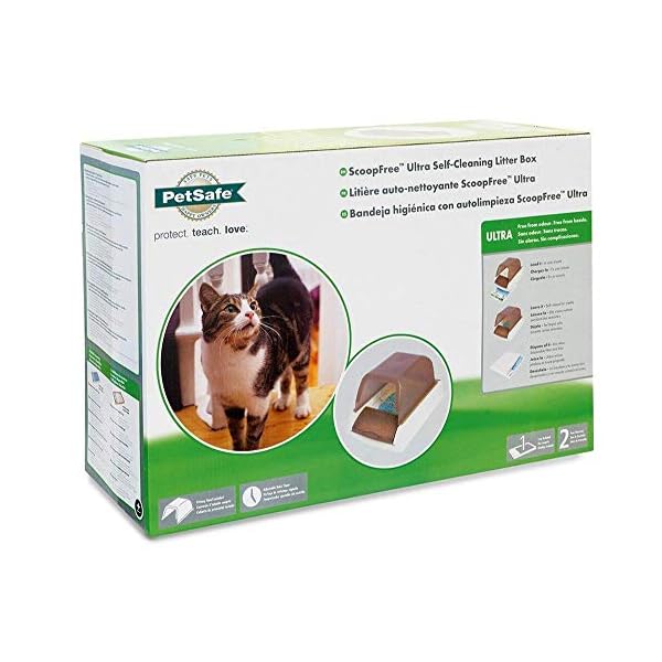 Die Sicherheitssensoren stoppen den Rechen, sobald die Katze zur Toilette zurückkehrt, zudem überwacht ein Gesundheitsmonitor die Häufigkeit der Toilettengänge. Das Gewicht der selbstreinigenden ScoopFree Ultra Katzentoilette beträgt 8, 84 kg.
