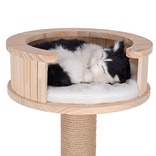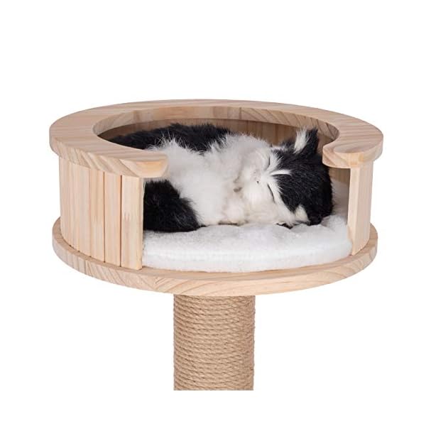 STABILER KATZEN-KRATZBAUM mit zwei kuscheligen Schlafplätzen, mehreren Ebenen und extra großer standfester Basis aus Holz – 45% größer als bei anderen Kratzbäumen